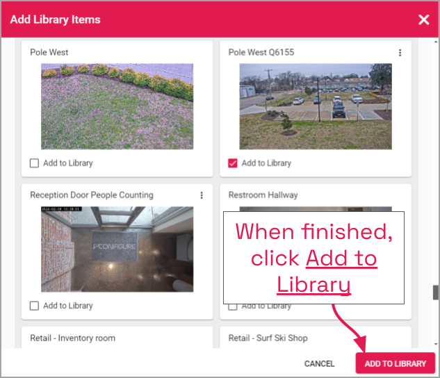 - From the Library screen, click the Add Library Items button. The Add Library Items screen will appear.