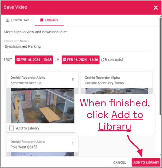 - Click the Add To Library button to begin the export. You will be able to watch the progress of the export on the Library screen.