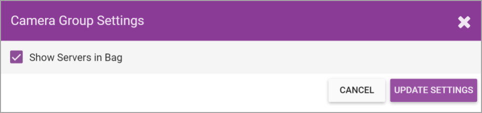 - Mark the Show Servers in Bag checkbox if you want the Servers to be displayed in the Camera Bag with the Camera Groups.
