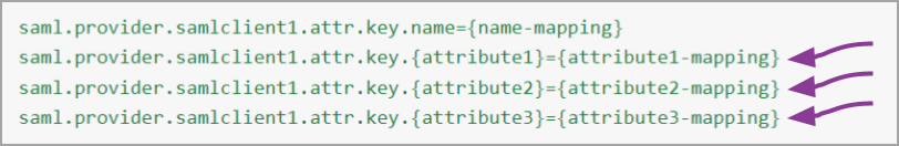 saml.provider.samlclient1.attr.key.<group attribute name>=<attribute-mapping>