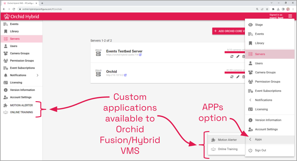 Once the APPs feature is activated, you can access your custom applications within Orchid Fusion VMS.