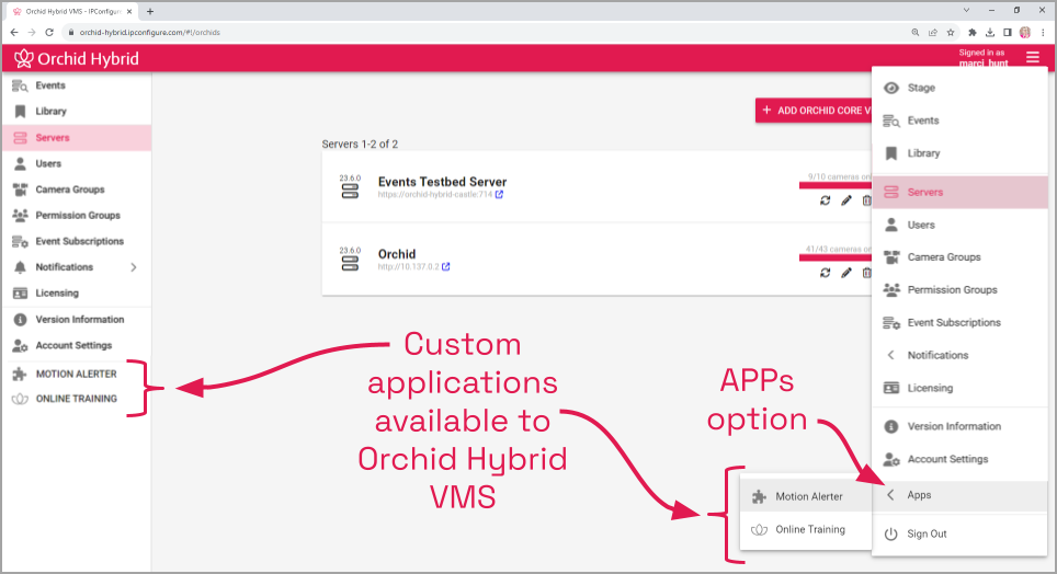 Once the APPs feature is activated, you can access your custom applications within Orchid Fusion VMS.