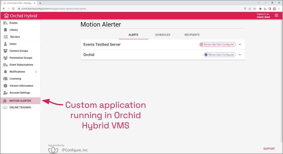 - Click on one of the custom applications to open it within Orchid Fusion VMS.