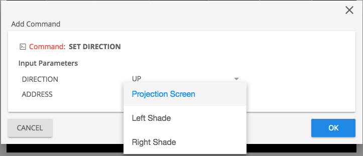 Create Address “ for Shades and/or Screens that will be controlled. The Address is a 3 digit address separated by a “.” The first value is the Zone, second value is the Group and the third value is the Node.