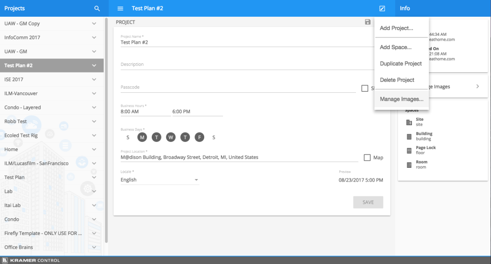 - Within Center Pane, open the Menu and select the Manage Images option