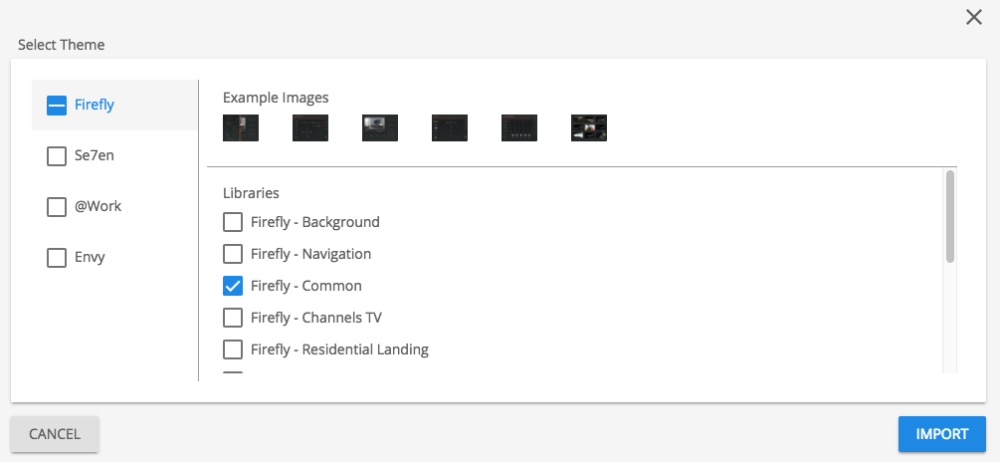 - Select an entire theme, or individual library from within Theme