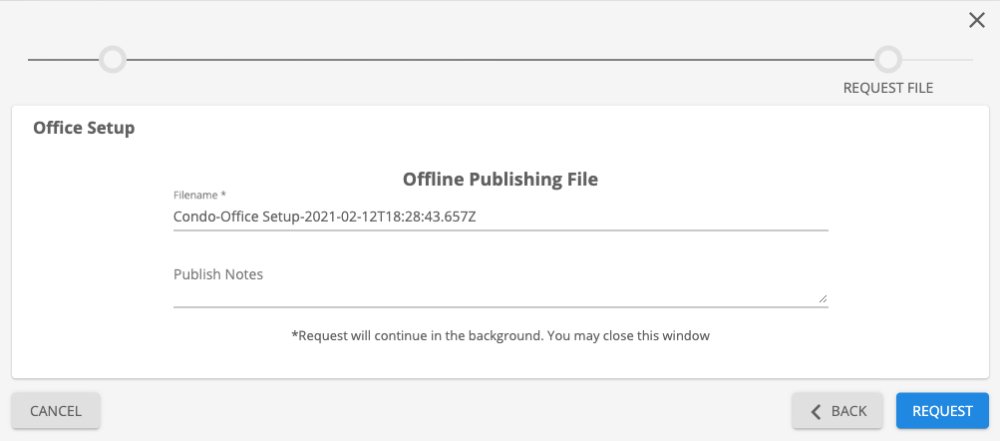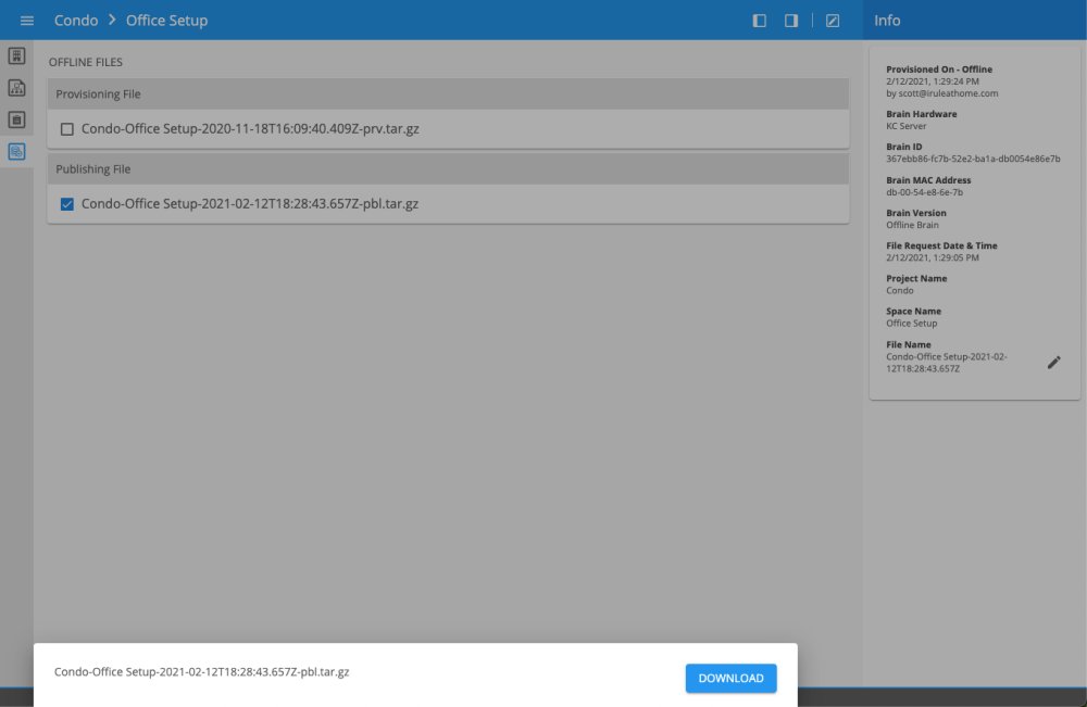 The last step is to download the file from the bottom snackbar. The file will be downloaded to your machine to be used to Offline publish through the Kramer UI webpage