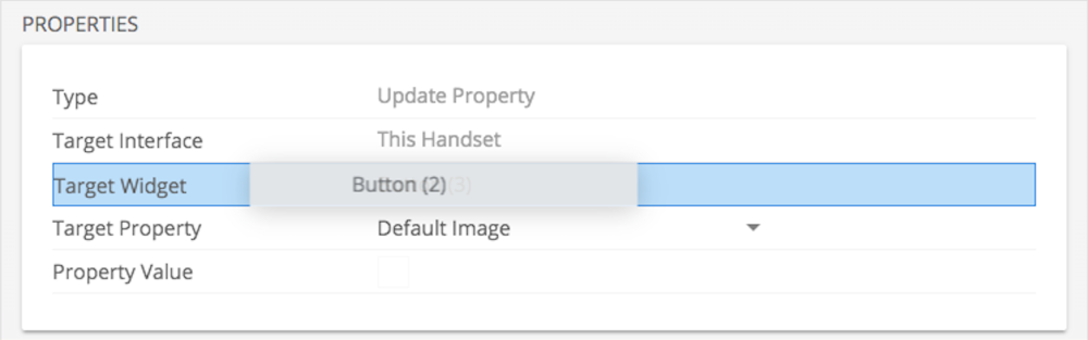Change Target Widget of Update Property by dragging the widget from the left pane to the property window Target Widget section