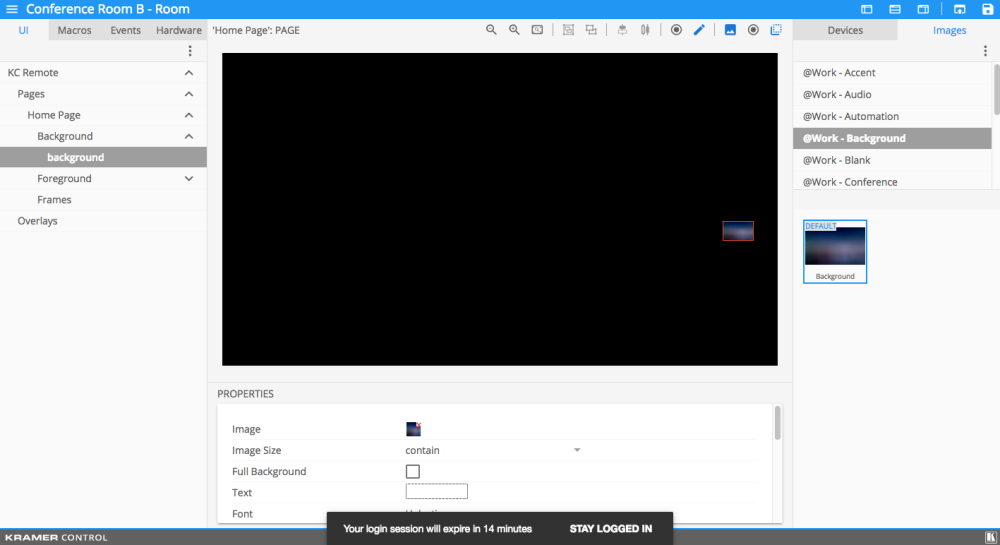- 在“Kramer Control构建器”中,在UI下,选择要编辑的页面。