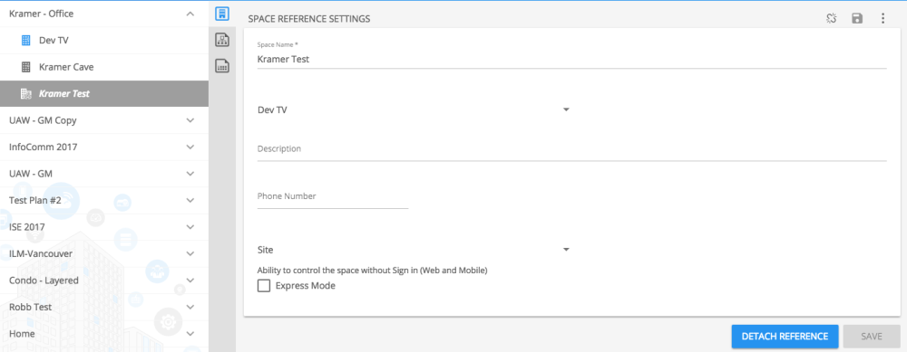 NOTE Accessing the Builder to change layout is not possible for a referenced space. You would have to detach the space and use the space as non-referenced to make UI changes.