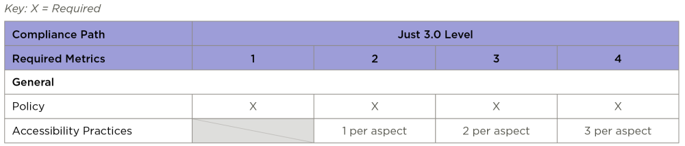 - Organization developed a plan for enhancing workplace accessibility and initiated at least three practices in each aspect of workplace accessibility (physical accessibility, digital accessibility, attitudinal awareness).