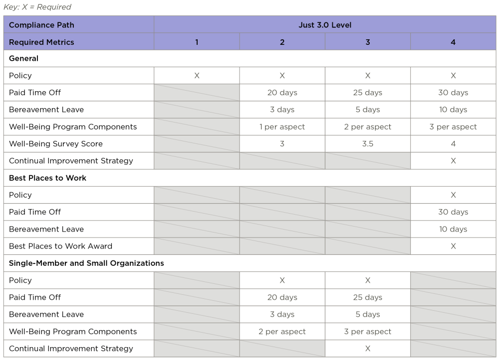 - Organization reports an average score of at least 3 on the Well-Being Survey.