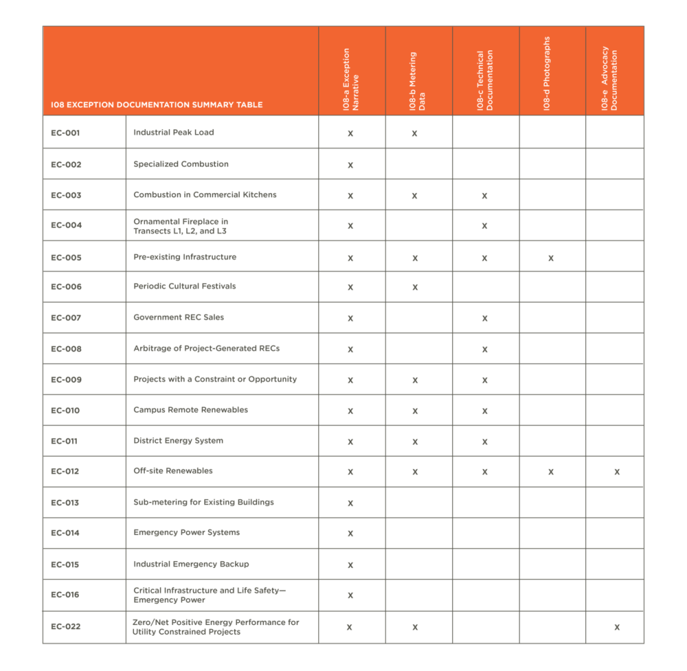 Projects that use Exceptions or compliance paths that are not standard for all projects must submit additional documentation per the below. Unless the exception is tied to the 12-month performance period, all exception documentation must be submitted at the Ready Audit.