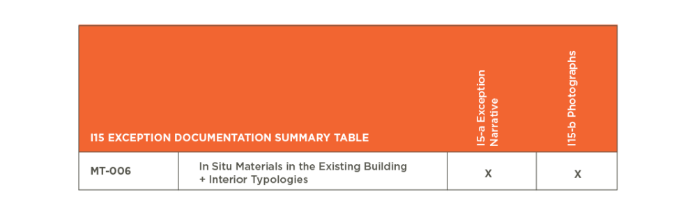 Projects that use Exceptions or compliance paths that are not standard for all projects must submit additional documentation per the below. Unless the exception is tied to the 12-month performance period, all exception documentation must be submitted at the Ready Audit.