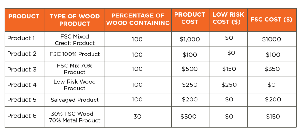 Example using Product 3 from the FSC Wood Calculation Example table below.