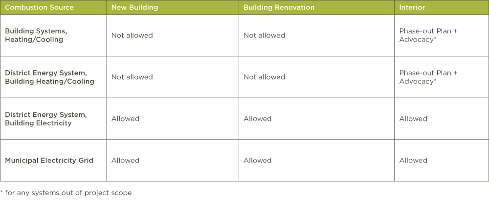 New Building and Building Renovation projects may not have combustion-based heating and/or cooling building systems.
