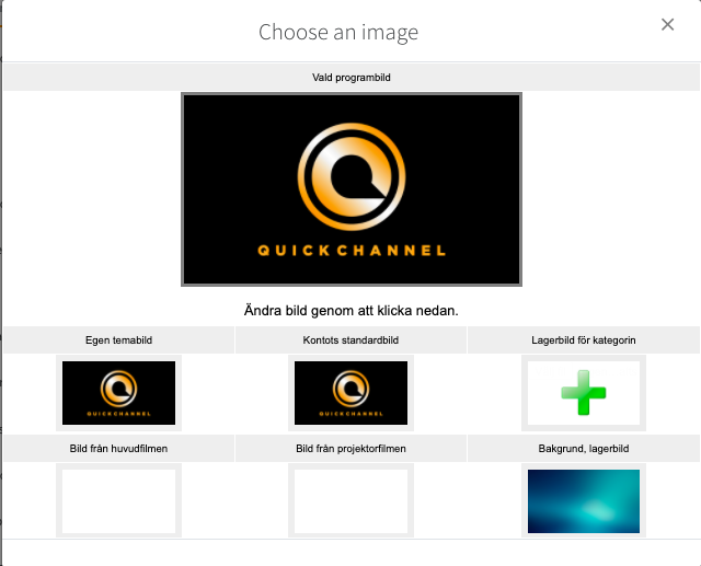 Om en egen bild ska laddas upp klicka på Lager bild för kategorin och ladda upp den bild som ska användas.