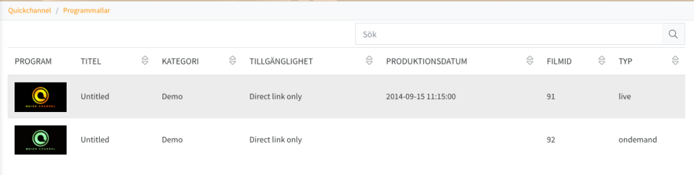 Innehåll-Programmallar innehåller din Livemall och OnDemandmall.