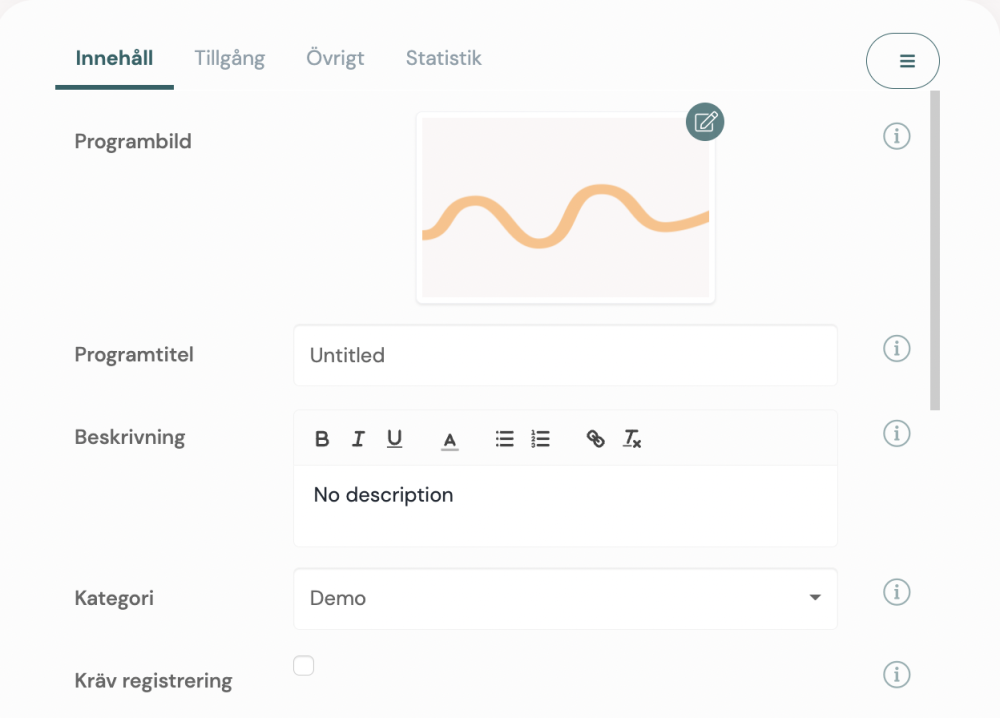 Ändra standardinställning på layout, titel, beskrivning, tumnagelbild, programlängd, dualstream och multibitrate.