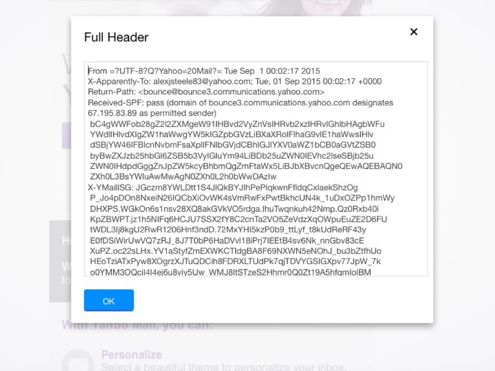Examining Email Headers in Yahoo Mail