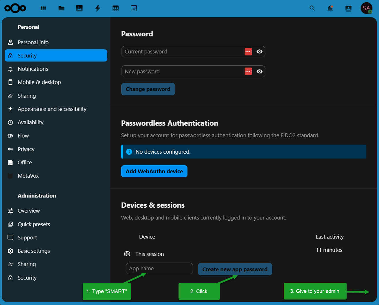 6. Click Create new app password |