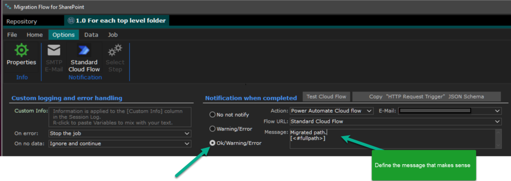 How to create a Power Automate notification flow that you can call from SMART Migration to send a chat message in a Teams chat channel.