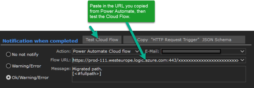 5. Paste in the URL you just coped from Power Automate and test it.