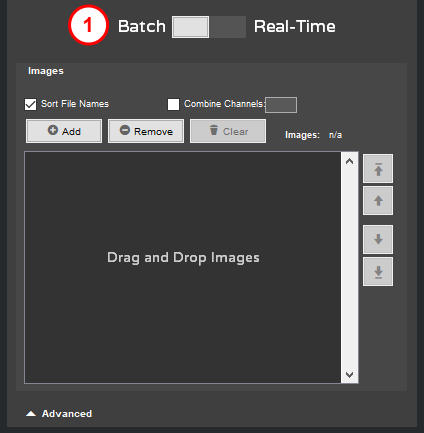 Batch Mode: Manually add images to the processing queue. Images can be added and reordered as needed before processing begins. There is also the option to combine channels from multiple grayscale images into single multi-channel images before applying the recipe.