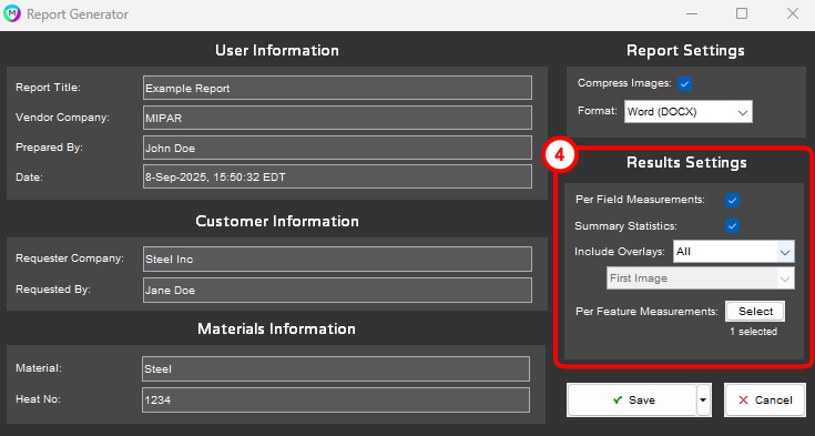 4. Results Settings (available when launched from Batch Processor)