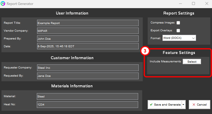 - Include Measurements: Select what content from which feature measurements to include in either the Single Image Feature or Batch Image Process report.