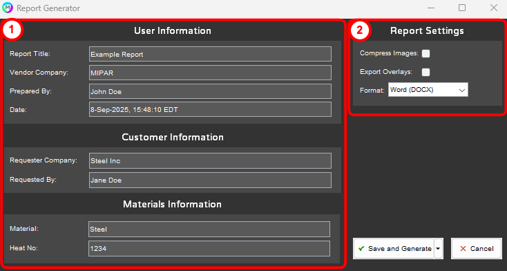 - Representative Image: Select an image from the batch to include in the report.