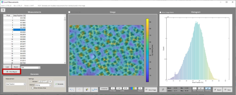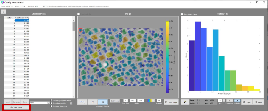 | Batch Image Feature | Histogram of Measurements opened by Post Processor |