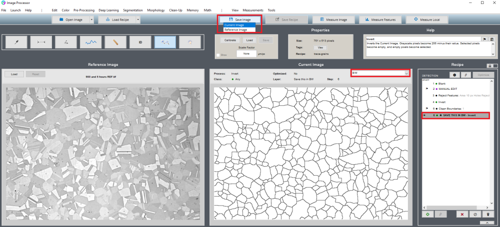 This example shows a Recipe-assisted approach to tracing features in the Image Processor. This approach is most useful for tracing grain boundaries, or other similar features.