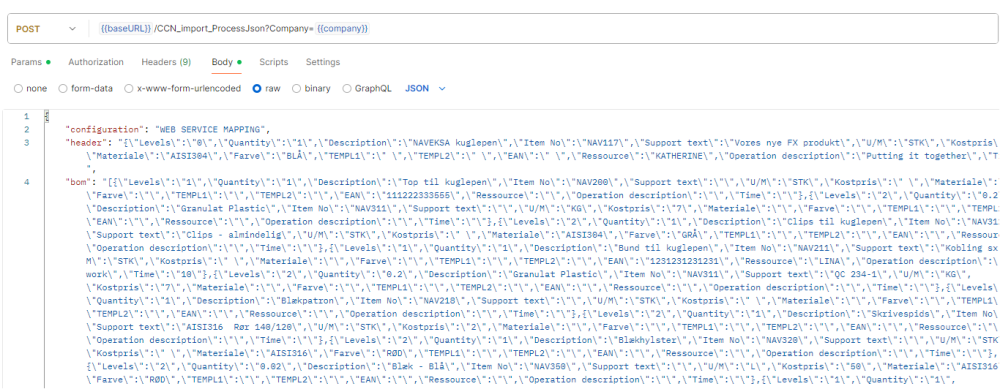 Web service endpoint: baseURL_/CCN_import_ProcessJson?Company=_company