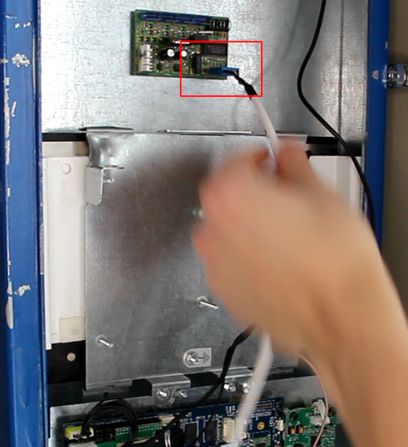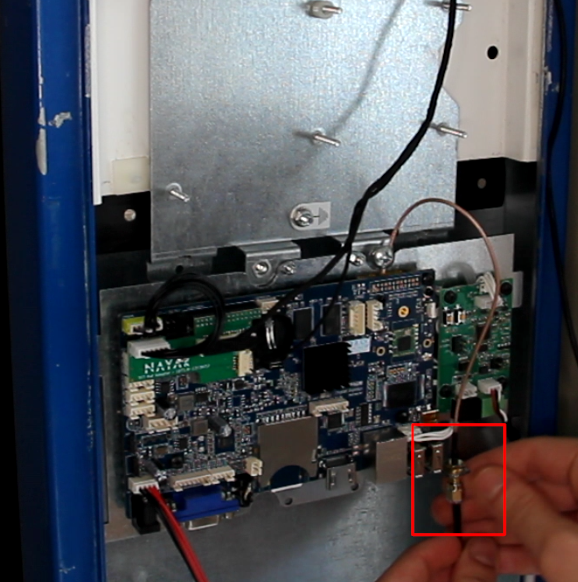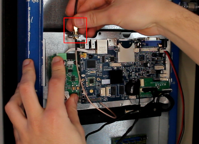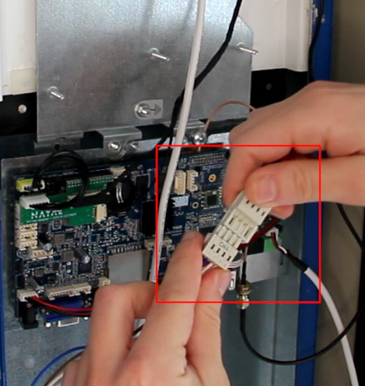 STEP 7: We install the antenna on the roof of the cabin, this is connected to the electronics by screwing it into the terminal protected with a red plastic.