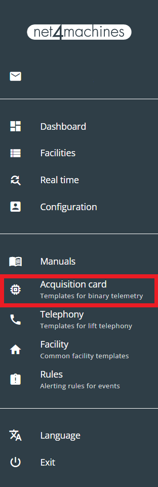 2. Click on “Acquisition card” on the side menu.