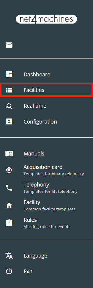 10. Click on “Facilities” and locate the facility you want to configure with an acquisition card.