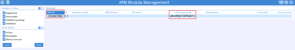 Pour connaître le Lift access code et le ARM SN, connectez-vous à la page suivante.