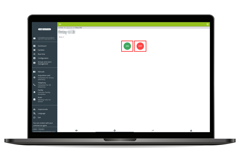 8. Une fois la connexion établie, utilisez les boutons ON et OFF