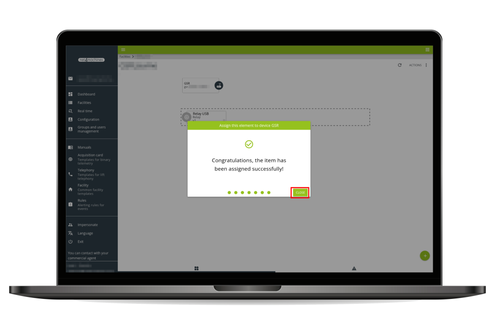 6. Suivez les étapes décrites dans l’assistant, connectez le relais USB et une fois le processus terminé avec succès, appuyez sur Close