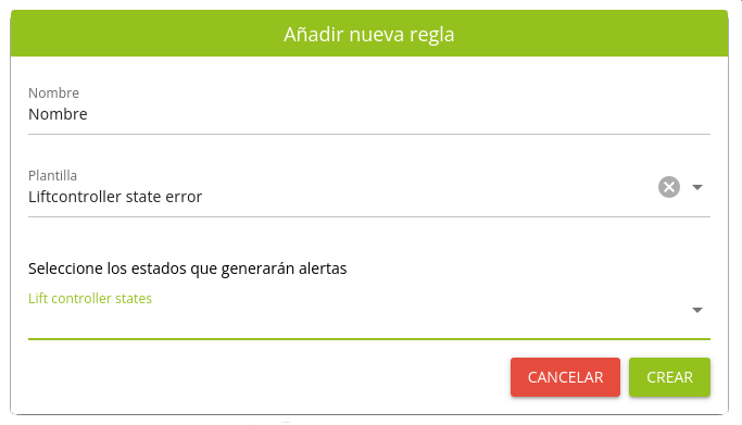 4. Saisissez le nom personnalisé de la règle et sélectionnez Liftcontroller state error dans le modèle.