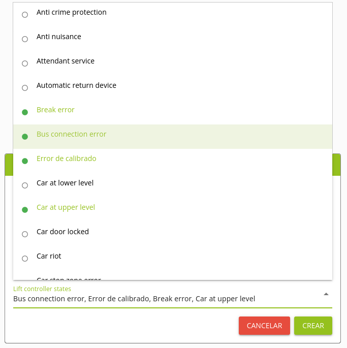 5. Les états généreront des alertes indépendantes. Sélectionnez les états dans les états du contrôleur d’ascenseur (Lift controller states) comme indiqué sur l’image ci-dessous.