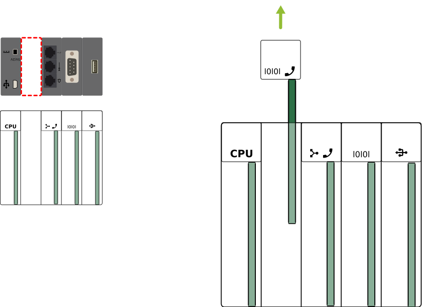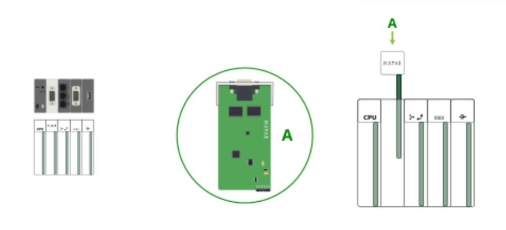| Carte spécialisée TM4, Étiquette | Câble null modem 3m, Bornier 6v vers RJ11-H |