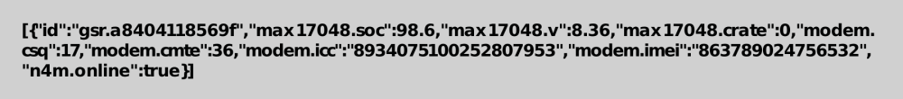 - “modem.csq”: é a cobertura do dispositivo. Os seus valores podem oscilar entre 0 e 31. Se mostra 99 é sinal de que há um erro na rede.