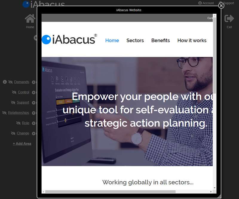 iAbacus lets you add links to websites and videos that provide further information or guidance for users. Use the method below to add web links or scroll down to read the method for adding video links. (Please note that some websites will not work because not all sites allow permission to be opened in iframe)
