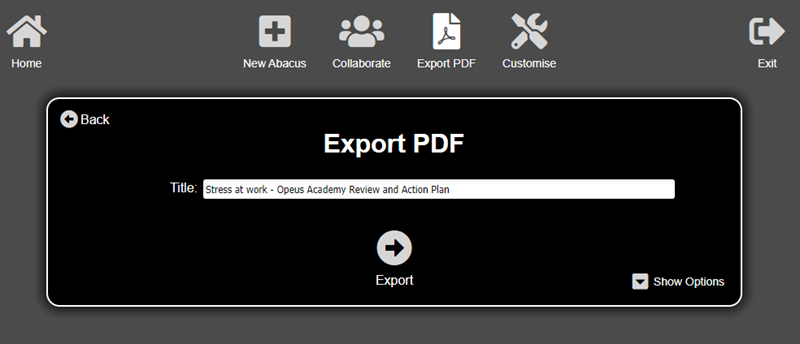 You will be taken to the export pdf page. If you just want the standard report creating then select the export button and your report will be generated (you can change the title of the report). Select the download pdf button and the report should appear in your web browser. Use the tools in your browser to save it wherever you choose.