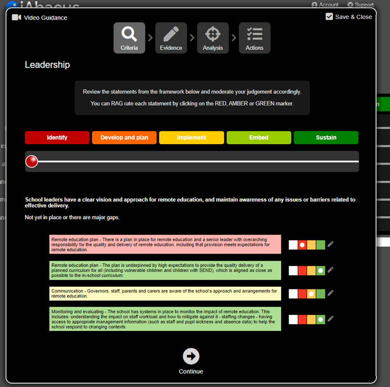 You can RAG rate each statement by clicking on the coloured box.
