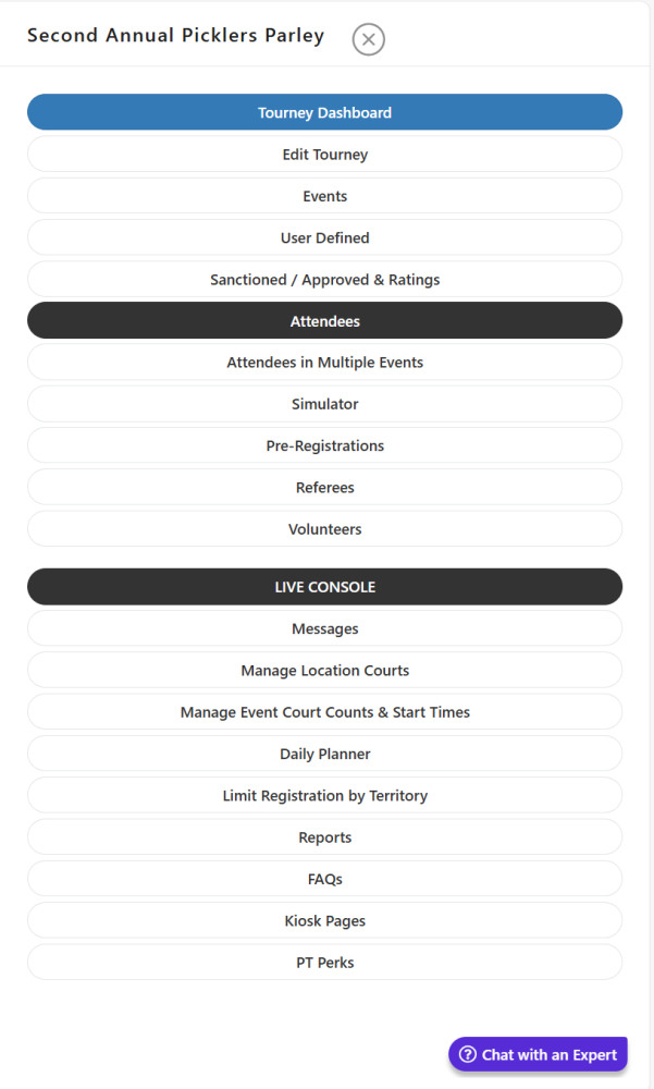 - Log in to your Pickleballbrackets.com account.