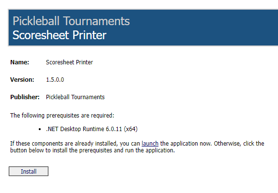 Click the Install button to download the print spooler installation file. The installation file, setup.exe, will be downloaded, usually to the download folder on your computer. Navigate to that folder and double click on the name of the file. Once the process begins, you will see the following screen. Click on Install to continue.
