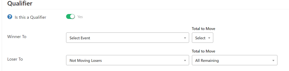- From the Winner to drop down menu, select the event the winners go to (usually the Main Draw) and the criteria for teams that will move.
